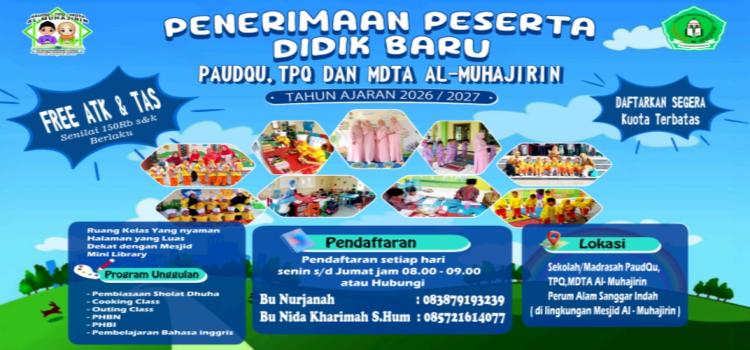 PENERIMAAN PESERTA DIDIK BARU PAUD, TPQ DAN MDTA AL-MUHAJIRIN TAHUN AJARAN 2026 / 2027